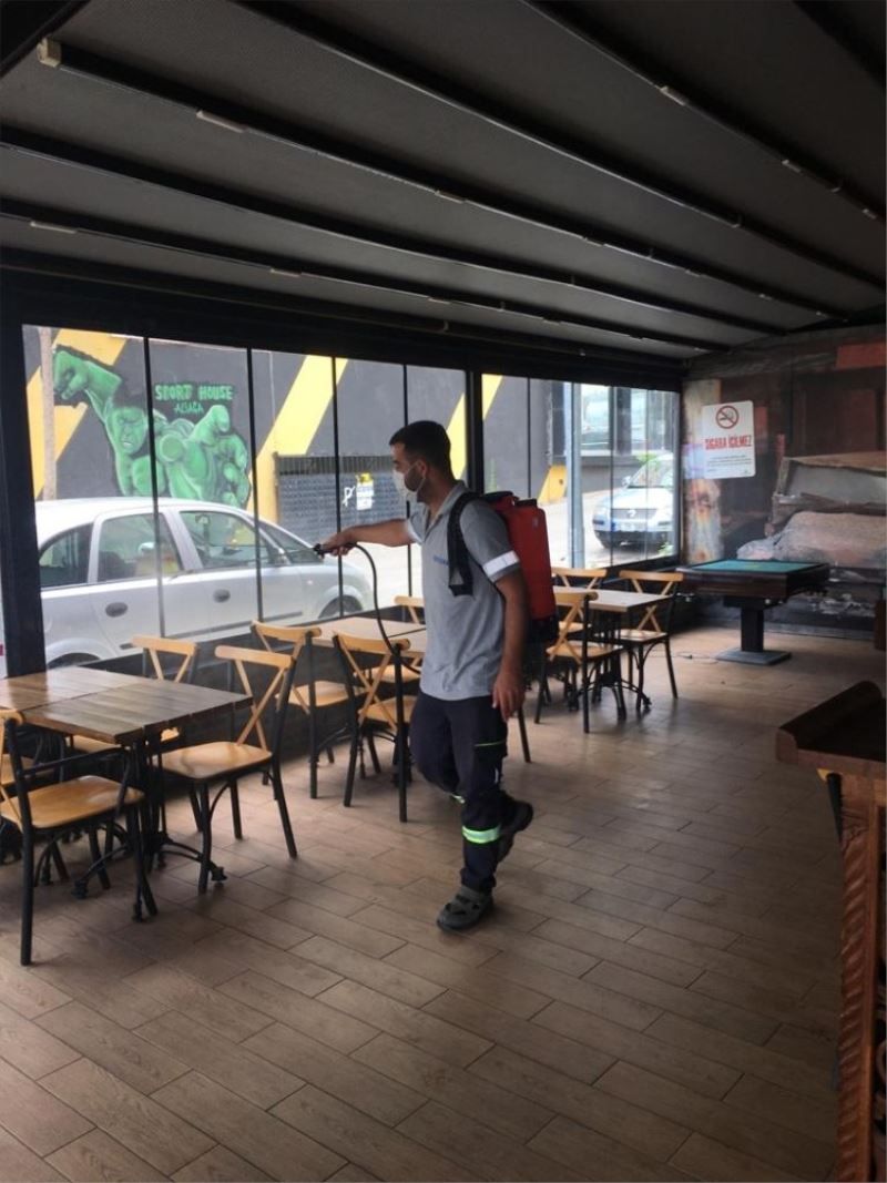 Aliağa Belediyesi, korona virüs (Covid-19) salgının etkisinin azalmasının ardından başlayan normalleşme sürecine yönelik toplum sağlığını ilgilendiren tedbirleri elden bırakmıyor. Korona virüs salgınında normalleşme sürecinin başlaması ile birlikte açılan lokanta, restoran ve kafeler birer birer açılırken, Aliağa Belediyesi salgın süresince cadde ve sokaklarla birlikte kamu kurum ve kuruluşlarında gerçekleştirdiği dezenfeksiyon çalışmasına yeni açılan iş yerlerinde de devam ediyor.