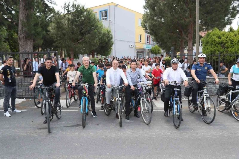 Bisiklet kullanımını özendirmek amacıyla Aliağa protokolü bisiklete binerken daha sonra Aliağa Fatih Ortaokulunda düzenlenen törene geçildi. Kaymakam Karaman, İlçe Emniyet Müdürü Balıkçıoğlu ile birlikte “Sağlık için pedal çeviriyoruz” etkinliği için öğrencilere bisiklet hediye etti.