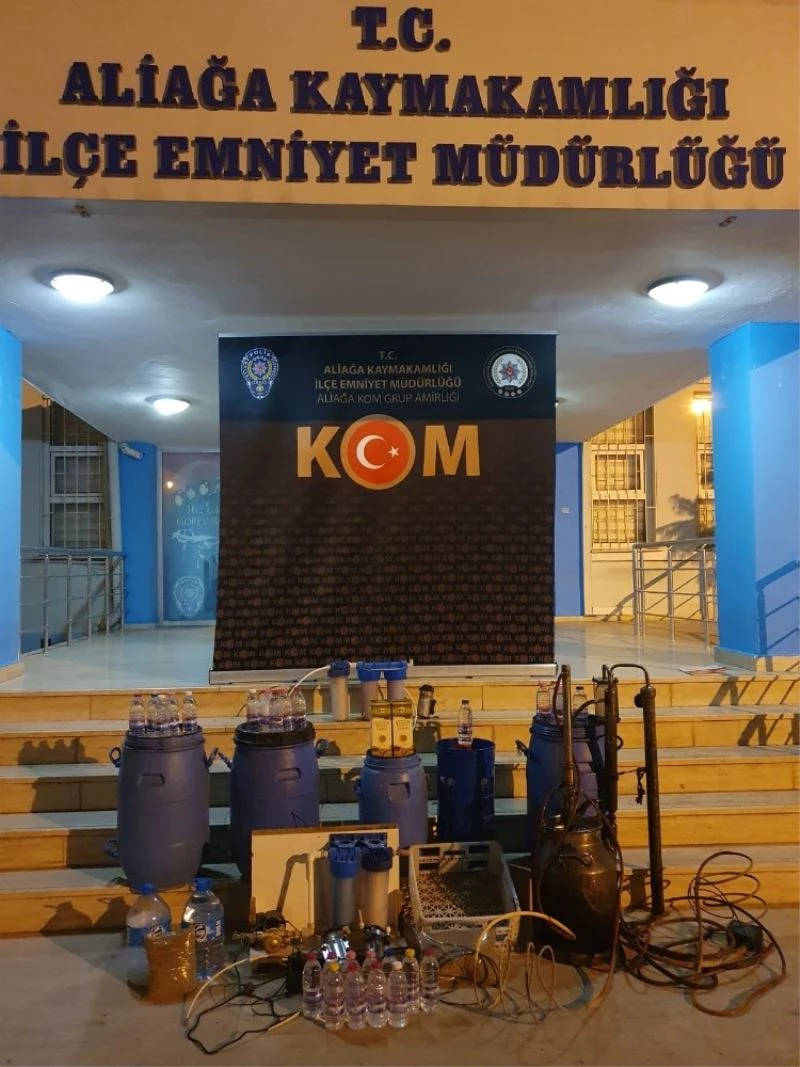 Edinilen bilgiye göre, Aliağa İlçe Emniyet Müdürlüğü KOM Grup Amirliği ekipleri, sahte/kaçak alkol satışının engellenmesine yönelik bir ikamete operasyon düzenledi. Yenişakran Mahallesi’nde yapılan operasyonda, Y.Ü isimli şahıs gözaltına alındı. Baskında alkol yapımında kullanılan malzemeler, 34 litre sahte içki ve 125 litre el yapımı olduğu değerlendirilen sıvı, 2 kilogram anason tohumu, 2 litre sıvı anason aroması ele geçirildi.