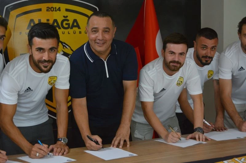 Transferde hızlı davranan sarı siyahlılar, anlaştığı futbolcular ile kulüp binasında toplu imza töreni düzenledi. İmza törenine Aliağaspor FK Başkanı Kamil Önal ile futbolcuların tamamı katıldı. Bölgesel Amatör Ligi (BAL)’nde mücadele edecek olan Aliağaspor FK, 13 futbolcu ile anlaşarak sözleşme imzaladı, 6 futbolcu ile de sözleşme yeniledi.