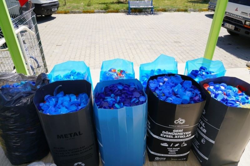 Çorlu’da mavi kapak toplama kampanyasına destek devam ediyor.