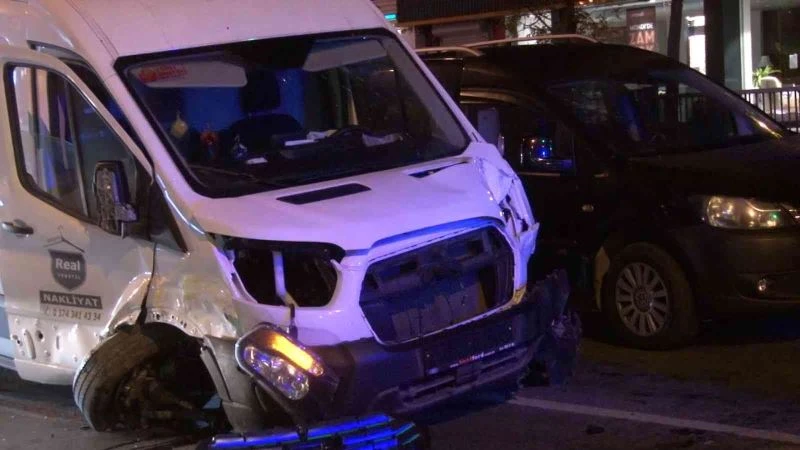Esenyurt’ta alkollü olduğu iddia edilen sürücü, minibüsle trafik ışıklarında bekleyen 6 araca çarptı. 2 kişinin yaralandığı kaza güvenlik kamerasına saniye saniye yansıdı.