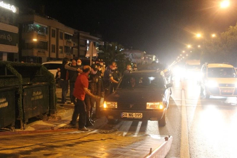 Olay, Atakum ilçesi Ömürevleri Kavşağı’nda dün akşam saat 20.00 sıralarında meydana geldi. Edinilen bilgiye göre, Samsun Emniyet Müdürlüğü Asayiş Şube Müdürlüğüne bağlı ekipler bir araçta silah bulunduğu ihbarı üzerine harekete geçti. Ekipler tarafından durdurulan araçta bulunan 4 şahıs polise direnerek, hakaret ve tehditler savurdu. Alkolmetreyi üflemek istemeyen şahıslar, “Biz vatan haini miyiz, FETÖ’cü müyüz" diye tepki gösterdi. Bir şahıs aracın yan aynasını kırarak yola fırlattı. Kendi aralarında da kavga eden şahıslar, olayı görüntüleyen muhabirin de üzerine yürüdü. Şahıslardan biri ise, “Beni savcı, herkes tanıyor sen çek” şeklinde basın mensubunu tehdit etti. Polis ekipleri tarafından olaya müdahale etmek üzere takviye ekip istendi. Çevreye verilen rahatsızlık ve polise yapılan mukavemet nedeniyle 4 şahıs gözaltına alındı. Şahıslara maske takmamaktan işlem yapılırken, sürücüye ise alkollü araç kullanmak ve ehliyet bulunmaması nedeniyle ceza kesildi. Araç bağlanarak çekiciyle götürüldü.