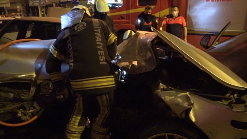 Denizli’nin Merkezefendi ilçesinde hatalı sollama yapan alkollü sürücü, 5 otomobile çarparak durabildi. Kazada alkollü sürücü ve 2 kişi yaralandı.