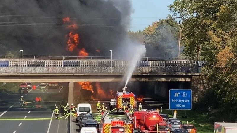 Almanya’nın Kuzey Ren-Vestlafya eyaletinde benzin yüklü tanker otobanda alev alev yandı.