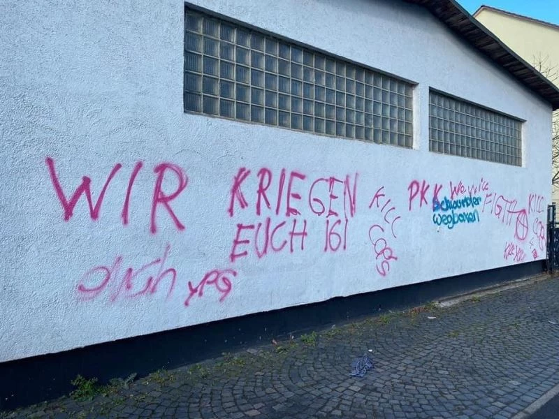 Almanya’nın Kassel kentinde PKK terör örgütü mensupları, Muhsin Yazıcıoğlu Kültür Merkezi ile Yunus Emre Camisi’nin duvarına hakaret ve tehdit içerikli yazı yazdı.