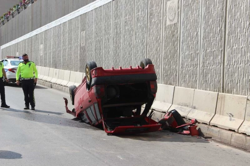 Alt geçitte takla atan otomobildeki anne ve oğlu yaralandı