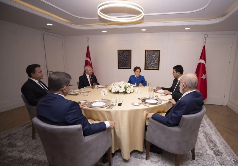 Gelecek Partisi Genel Başkanı Ahmet Davutoğlu’nun ev sahipliğinde bir araya gelen 6 muhalefet partisi genel başkanının ortak açıklamasında, “Altı siyasi parti olarak yol haritamızda belirlediğimiz şekilde, seçim sonuçları YSK tarafından ilan edilip kesinleşene kadar ortak çalışmaya ve iş birliğine devam edeceğiz” ifadeleri kullanıldı.