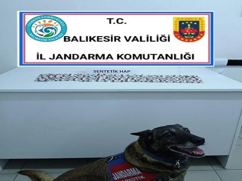 Balıkesir’in Altıeylül ilçesinde jandarma ekipleri narkotik köpeği ile uyuşturucu operasyonu düzenledi. Operasyonda bin adet uyuşturucu hap ele geçirildi.
