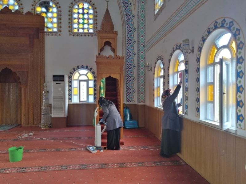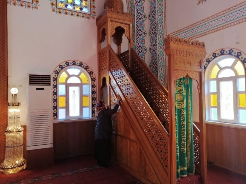 Ekipler, ayrıca ibadethanelerin iç kısımlarında bulunan hasır ve halıları da özel solüsyonlarla dezenfekte ederek hijyenik hale getiriyor.