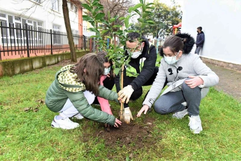 Okul bahçelerine narenciye fidanı dikimi ile ilgili konuşan Başkan Aşkın Tören, “Yarınlarımız olan çocuklarımızın diktikleri fidanlar ile birlikte büyüyerek geleceğimizi yeşertmeleri için okullarımızda ağaçlandırma çalışmalarımızı sürdürüyoruz. İnsan sağlığı ve yaşam kalitesinin arttırılmasında şehrin sahip olduğu yeşil alan nicelik ve niteliği önemli bir etkendir. Bu projemiz ile aynı zamanda şehrimizin geçmişinde var olan narenciye bahçelerini yeniden canlandırarak bir nevi geçmişi bugüne ve gelecek nesillere taşımak istiyoruz. Daha yeşil bir şehir ve yaşanabilir bir dünya için ağaçlandırma çalışmalarımıza ara vermeden devam edeceğiz” dedi.