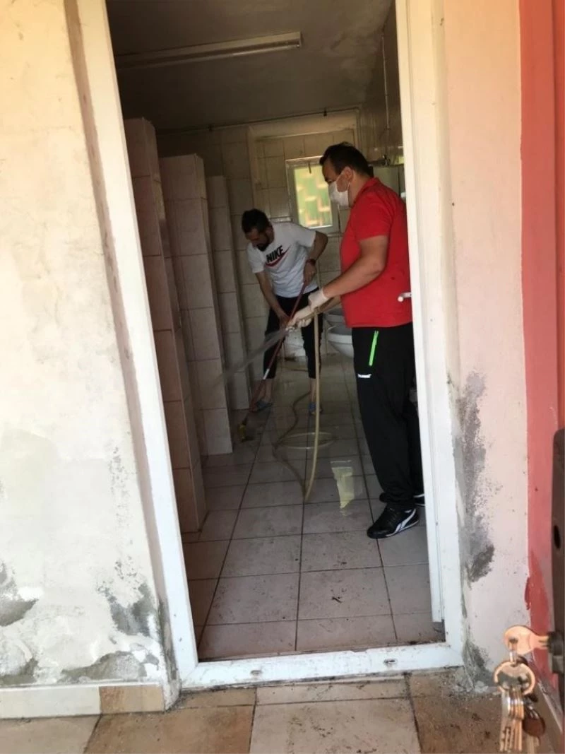TFF 2.Lig takımı Zonguldak Kömürspor altyapı tesis korona virüs önlemleri kapsamında ilaçlandı. Ardından teknik heyet ve oyuncular tesisi tepeden tırnağa temizledi.