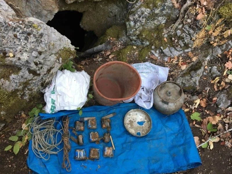 Ele geçirilen malzemeler mağara ile birlikte kontrollü şekilde patlatılarak imha edildi.
