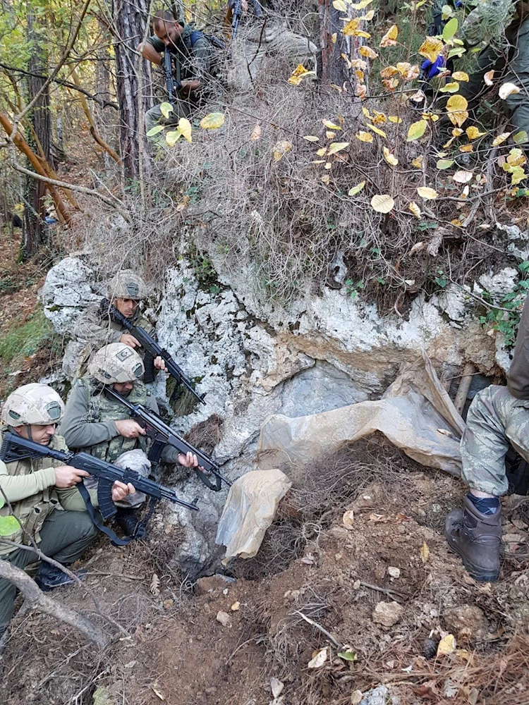 OSMANİYE`de terör örgütüne ait sığınak bulundu. Sığınak içerisindeki üç ayrı noktada yapılan aramada toprağa gömülü vaziyette 1 adet tüp`e bağlı el yapımı patlayıcı düzeneği ile gıda, sağlık ve çeşitli miktarlarda yaşam malzemeleri ele geçirildi. Osmaniye İl Jandarma Komutanlığı ekiplerince, Amanoslar bölgesinde, bölücü terör örgütü PKK`nın kış üslenmelerinin belirlenmesi, mağara, sığınak ve erzak depolarının imha edilmesine yönelik operasyonlar aralıksız sürüyor. Bu kapsamda yürütülen arama tarama faaliyetleri sırasında bulunan sığınak içerisinde, toprağa gömülü vaziyette; 1 adet kablolu EYP düzeneği, EYP yapımında kullanılan malzemeler, 7 adet çeşitli büyüklükte tüp, çok miktarda mutfak araç ve gereçleri, güneş paneli, sağlık malzemeleri ile çeşitli miktarlarda muhtelif gıda ve yaşam malzemeleri ele geçirildi. Taşınmasında ve bulundurulmasında sakınca görülen malzemeler olay yerinde imha edilirken, delil niteliği taşıyan ve üzerinde iz bulunduğu değerlendirilen malzemeler Olay Yeri İnceleme Timi tarafından incelenerek, Jandarma Kriminal Daire Başkanlığına gönderilmek üzere el konuldu. Olayla ilgili soruşturma sürüyor. /İbrahim EMÜL