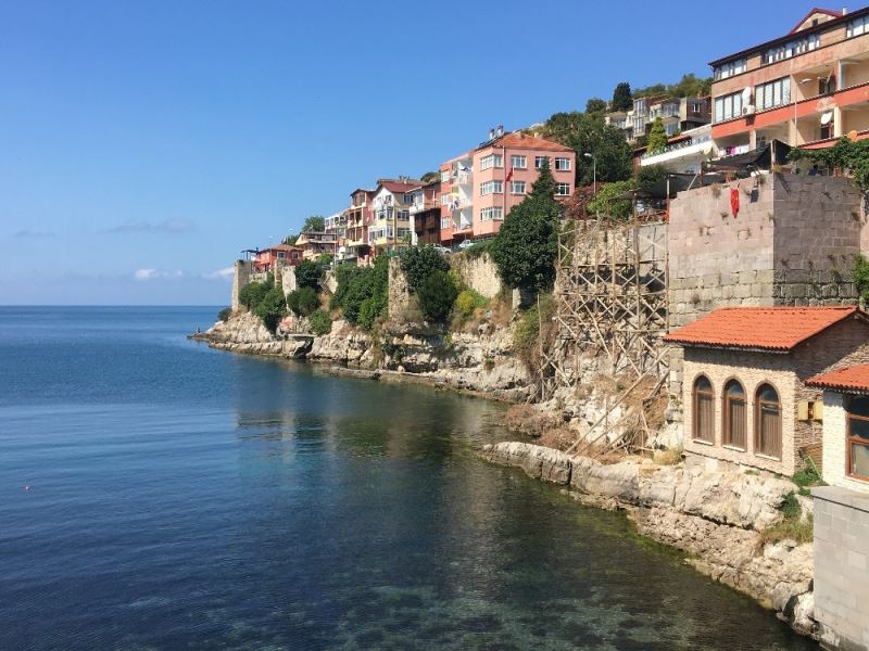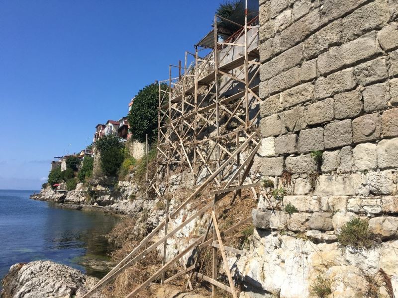 İşçiler tarafından çalışmaların yapılacağı alanlara iskeleler kurulurken, tarihi kalenin korunmasının Amasra turizmi açısından önem taşıyor.