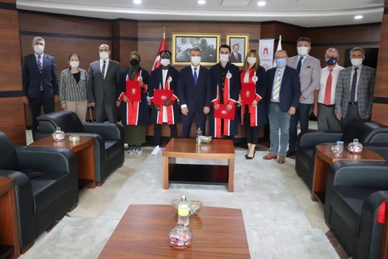 Ayrıca törende 2019-2020 bahar döneminde Amasya Üniversitesinden mezun olmaya hak kazanan yaklaşık 4 bin 500 öğrenciyi temsilen Başak Karaköse, Mustafa Ödübek, Uluslararası Öğrencileri temsilen Farhia Hassan Muhammed ve Dame Gueye de yer aldı.