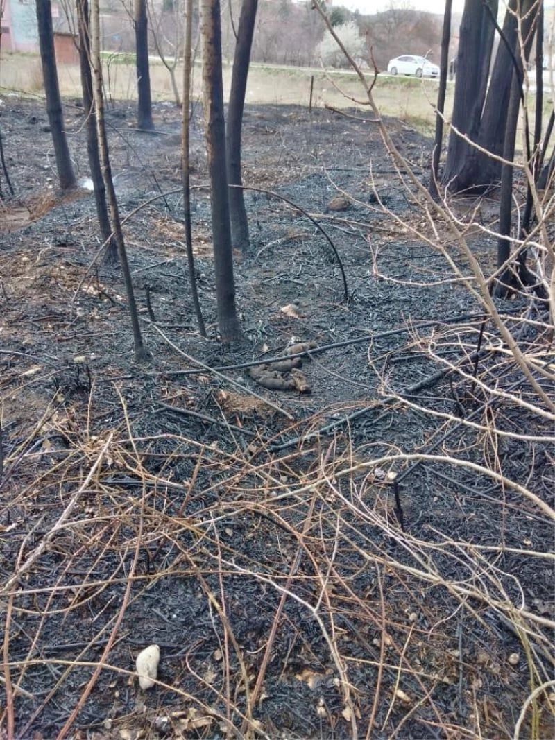Amasya’nın Taşova ilçesinde ağaçların bulunduğu alanda henüz belirlenemeyen nedenle çıkan yangında 5 yavru köpek ve 1 kaplumbağa yanarak telef oldu.