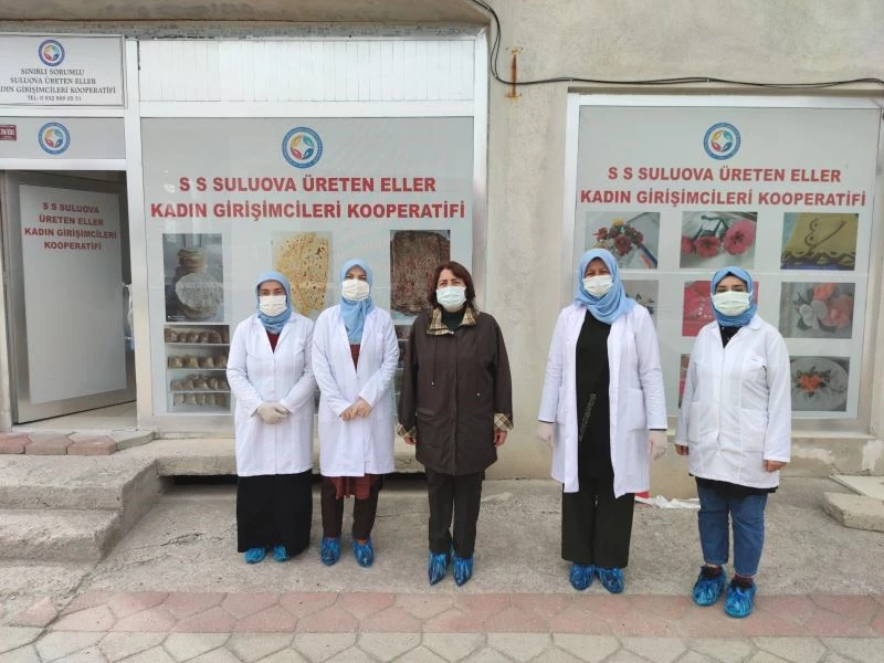 Faaliyetlerine sadece 7 kadın ile devam etmeyeceklerini belirten Oral, “Eli yatkın olanlar, güzel yaptığını söyleyenlerden numune alıyoruz, evlerinde ürettikleri ürünlerin satışı bizim üzerimizden yapılıyor. Yılsonuna kadar 50’den fazla kadına istihdam sağlayacağımıza inanıyoruz. Bu süreçte bizlere destek olan, devletimizin tüm kurumlarına, İçişleri Bakanlığımıza, Amasya Valiliğimize, Suluova Kaymakamlığına, Suluova Belediye Başkanlığına, İŞKUR İl Müdürlüğümüze ve KOSGEB il müdürlüğümüze teşekkür ediyoruz” şeklinde konuştu.