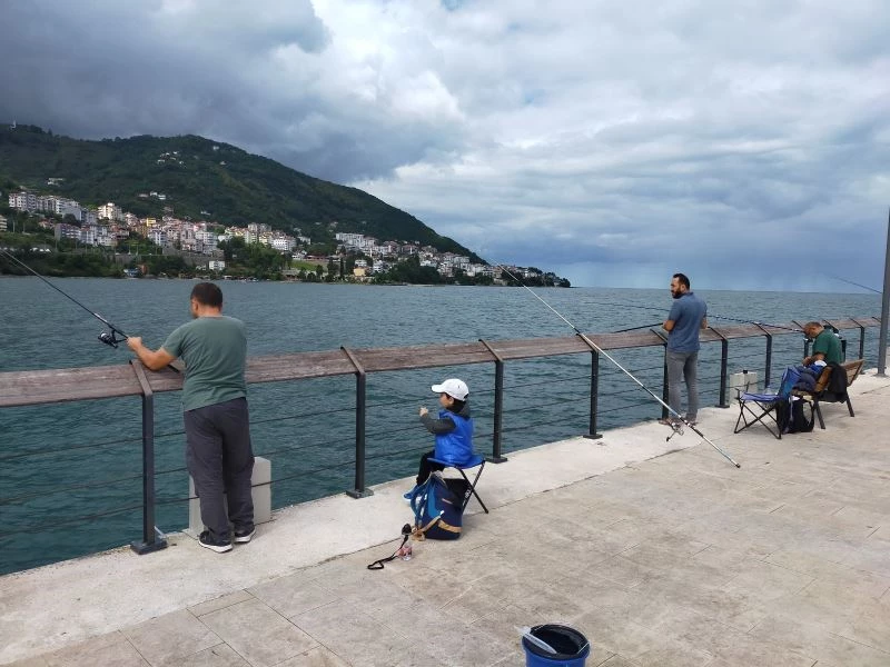 Ordu’da amatör balıkçılar, iskelede balık tutmanın keyfini yaşıyorlar.