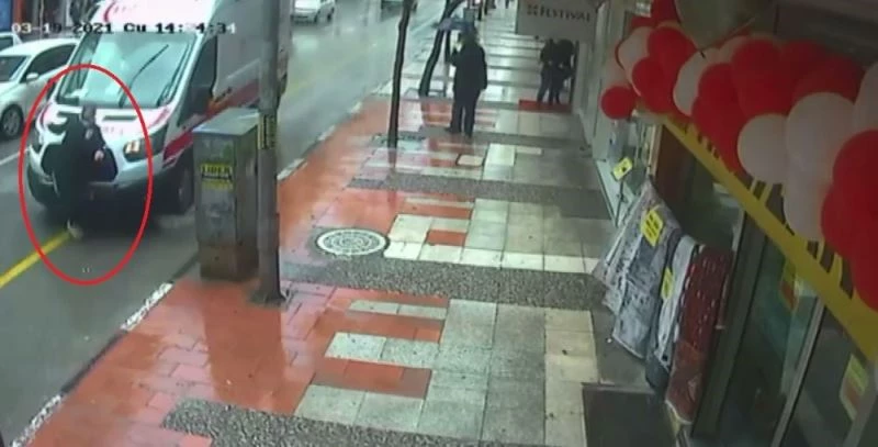 Manisa’da seyir halindeki ambulansın çarptığı down sendromlu şahıs metrelerce sürüklenerek yaralandı. Kaza anı çevredeki bir iş yerinin güvenlik kamerasına saniye saniye yansıdı.