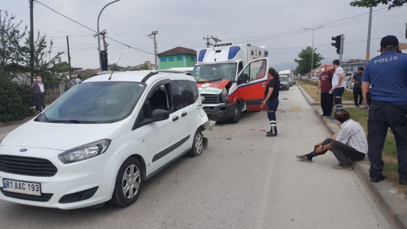 Düzce’de 1’i ambulans 3 aracın karıştığı kazada 1 kişi yaralandı.