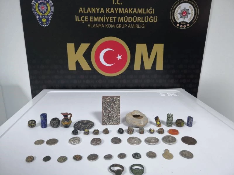 Tarihi eser kaçakçılığından aranan ABD vatandaşı Kinze David B.’nin (46) Güller Pınarı Mahallesi Altın Sokak’taki bir apart otelde kaldığı bilgisine ulaşan Alanya İlçe Emniyet Müdürlüğü Kaçakçılık ve Organize Suçlarla Mücadele (KOM) Grup Amirliği ekipleri harekete geçti. Belirlenen adrese baskın düzenleyen ekipler, Antik Yunan Dönemi’ne ait çeşitli ebatlarda 20 sikke, üzerinde o dönemin işlemeleri bulunan 2 yüzük ve 23 adet çeşitli eserler ele geçirirken, Kinze David B.’yi gözaltına aldı. Ele geçen eserler incelenmesi için Alanya Müze Müdürlüğü’ne teslim edildi. Gözaltına alınan Kinze David B. hakkında Kültür ve Tabiat Varlıklarını Koruma Kanunu kapsamında 2863 SKM suçundan yasal işlem başlatılarak, zanlı adliyeye sevk edildi.