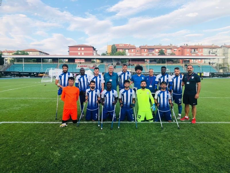 Şahinbey Belediye Gençlik ve Spor Kulübü Ampute Futbol Takımı, Ankara’da düzenlenen ve tek devreli lig usulüne göre yapılan maçlarda Esengücü Engelliler Spor Kulübü ile karşı karşıya geldi. Rakibini 8-0 gibi net bir skorla mağlup eden mavi beyazlılar, üçüncü maçında üçüncü galibiyetini aldı. Şahinbey Ampute’nin gollerini 2 ve 20. dakikalarda Mendez, 12 ve 24. dakikalarda Mubarek, 5, 7 ve 23 dakikalarda Rahmi ve 10’uncu dakikada Richart kaydetti.