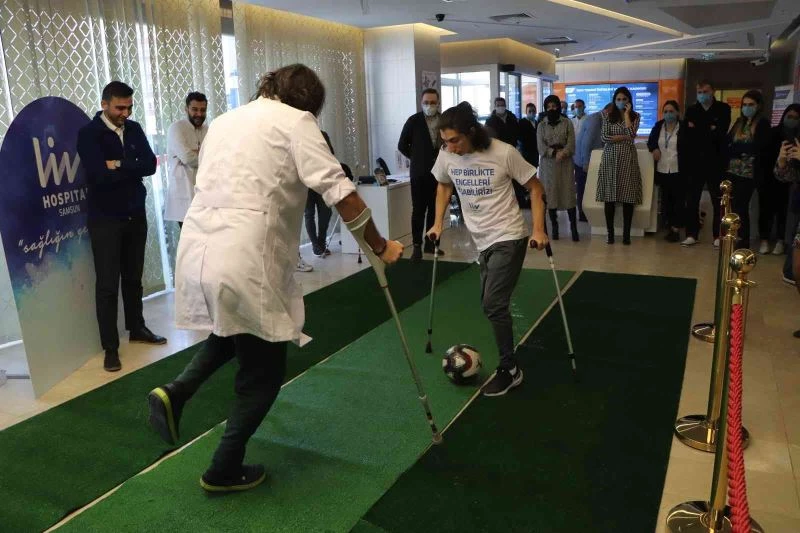 Sağlık çalışanları ile Ampute Genç Milli Takım oyuncuları hastane lobisi içerisinde empati futbol maçı yaptı. Ampute futbol oyuncuları gibi değneklerle futbol oynayan sağlıkçılar bir hayli zorlandı.