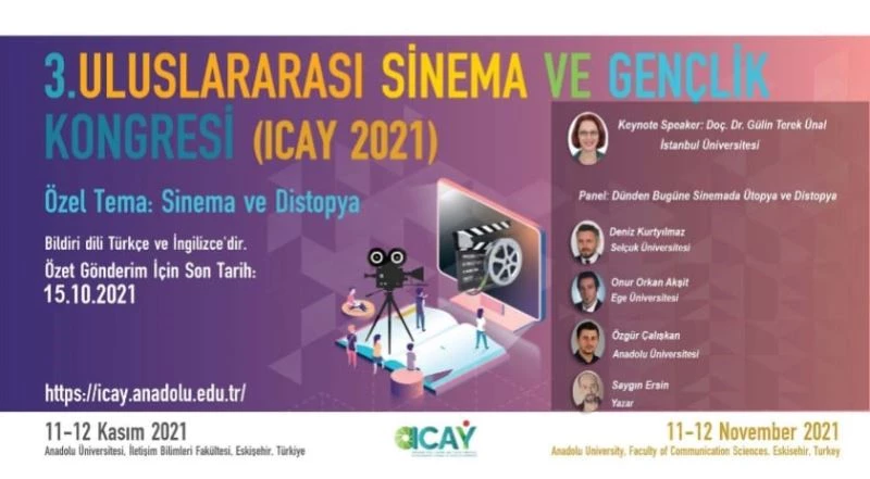 Anadolu Üniversitesi İletişim Bilimleri Fakültesi tarafından üçüncüsü düzenlenen “Uluslararası Sinema ve Gençlik Kongresi” (ICAY) çevrim içi ortamda yapıldı.