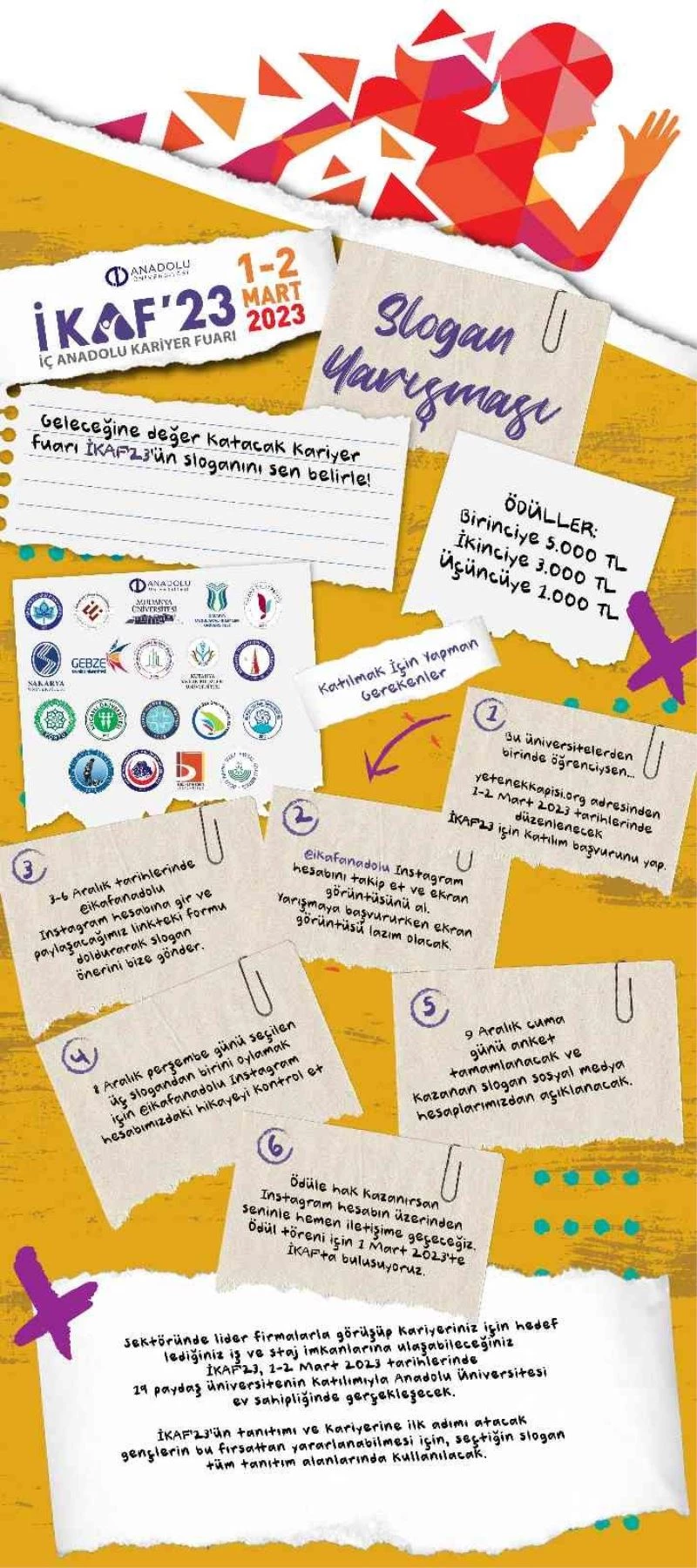 Anadolu Üniversitesi’nin ev sahipliğinde düzenlenecek olan İKAF’23 kariyer fuarının sloganı ödüllü yarışmayla öğrenciler tarafından belirlenecek.