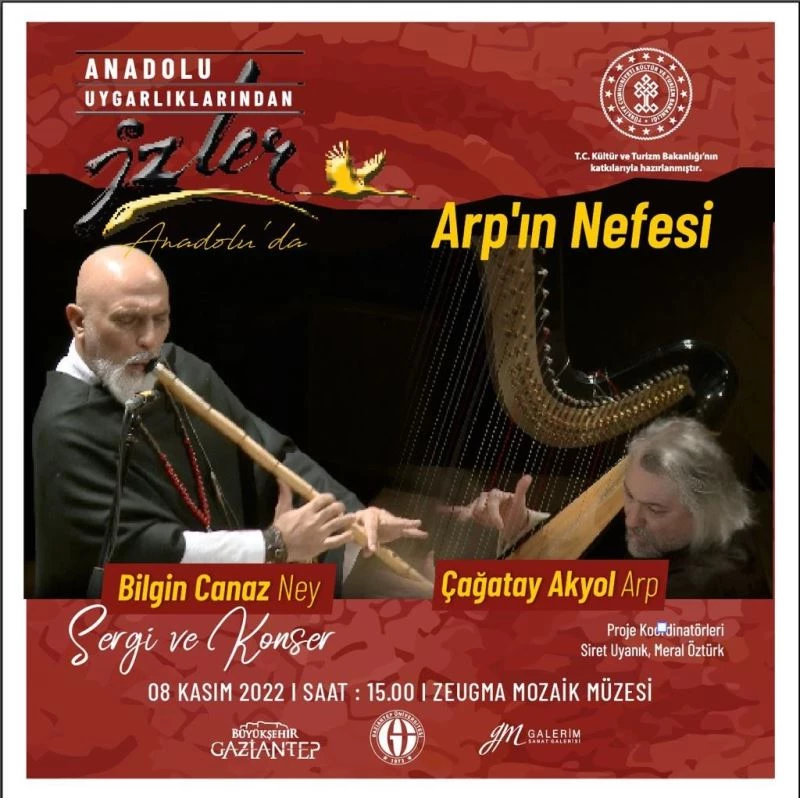 Bilgin Canaz’ın ‘Ney’, Çağatay Akyol’un ‘Arp’ dinletilerinin de yer alacağı program, Anadolu uygarlıkları ve sanatla ilgili panele de ev sahipliği yapacak. Panel Gaziantep üniversitesi Güzel Sanatlar Fakültesi Konferans Salonu’nda aynı gün saat 10.00’da başlayacak.