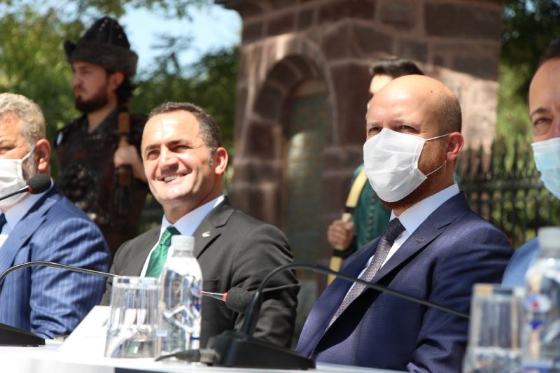 Bilecik’in Söğüt ilçesi Ertuğrulgazi Türbesi önünde yapılan tanıtım toplantısında konuşan Dünya Etnospor Konfederasyonu Başkanı ve Okçular Vakfı Mütevelli Heyeti Üyesi Bilal Erdoğan, “Biz bu yola çıkarken Çanakkale ile Ahlat-Malazgirt’in adeta bizim tarihimizin kültürümüzün kimliğimizin iki yakasının bir araya gelişi olarak değerlendirilmesi gerektiğini düşünüyorum. Türkiye Cumhuriyeti’nde doğan her çocuğun her gencin liseyi bitirmeden önce muhakkak hem Ahlat’ı, Malazgirt’i, hem Çanakkale’yi görmüş olması gerektiğine vurgu yapmaya çalıştık. Etkinliklerimizde de gençlerimizi Ahlat ve Malazgirt’e getirmeye özen gösterdik. Şimdi Söğüt, Bilecik, Şeyh Edebali, Ertuğrul Gazi de bu yolun dönüm noktalarından bir başkası. Dolayısıyla ümit ediyoruz ki bu kimliğimizi yeniden ihyası yolculuğunda bu önemli coğrafi işaret noktalarından bir tanesinde gençlerimize burayı da hatırlatmış olalım. Gençlerimiz yaptıkları gezilerde muhakkak akıllarına gelen yerlerden bir tanesi de Söğüt olsun” ifadelerini kullandı.