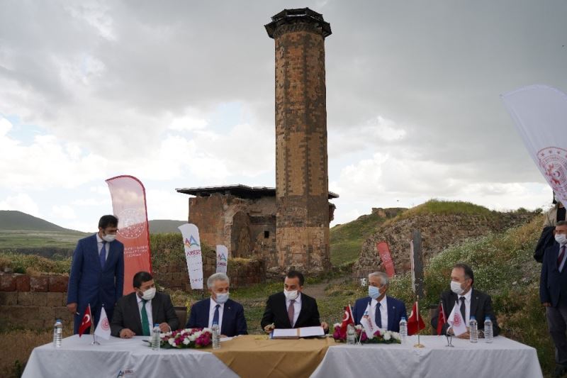 Ebu’l Manuçehr Camii, Ani Arkeolojik Alanı’ndaki diğer anıtsal eserlerle birlikte 2016 yılında UNESCO Dünya Kültürel Miras Listesi’ne girdi. Günümüze yıkılmadan ulaşabilmeyi başaran cami, Anadolu’daki en eski Selçuklu eserlerinden biri olarak biliniyor. Dikdörtgen planlı iki katlı yapının tavanı zengin Selçuklu motifleri ile süslü. Caminin 99 merdivenli minaresinin gözcü kulesi olarak da kullanıldığı belirtiliyor. Sanayi ve Teknoloji Bakanlığı’na bağlı Kalkınma Ajansları Genel Müdürlüğü koordinasyonunda faaliyetlerini yürüten Serhat Kalkınma Ajansı, caminin gelecek nesillere aktarılması, ulusal ve uluslararası çapta bilinirliğinin artması için kolları sıvadı. Bu kapsamda geçmiş yıllarda da bazı restorasyonlardan geçen caminin tam anlamıyla ayağa kaldırılması için Kalkınma Ajansları Genel Müdürlüğü ile Kültür Varlıkları ve Müzeler Genel Müdürlüğü çalışmalara başladı. Çalışmaların sonuçlanmasının ardından Kalkınma Ajansları Genel Müdürü Barış Yeniçeri ile Kültür Varlıkları ve Müzeler Genel Müdürü Gökhan Yazgı arasında projelendirme ve restorasyon uygulamaları için protokol imzalandı. İmza törenine Kars Valisi Türker Öksüz, eski Ulaştırma, Denizcilik ve Haberleşme Bakanı, Kars Milletvekili Ahmet Arslan, AK Parti Kars Milletvekili Yunus Kılıç katıldı.