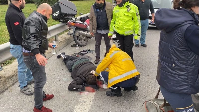 Ani fren yapan araca çarpan motosikletli ağır yaralandı