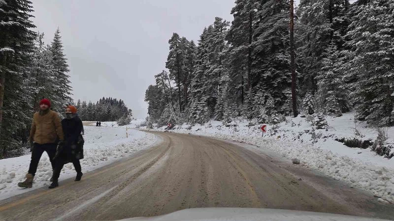 Aniden bastıran kar, kayak merkezi yolunda sürücüleri yolda bıraktı