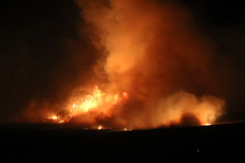 Anız yangını rüzgarın etkisiyle devasa boyuta ulaştı, ekili alanlar zarar gördü