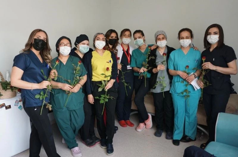 Gaziantep Özel ANKA Hastanesi yönetimi, 8 Mart Dünya Kadınlar Günü dolayısıyla hastanede tedavi gören kadın hastalara, hekimlere ve personele gül vererek, tüm kadınların gününü kutladı.