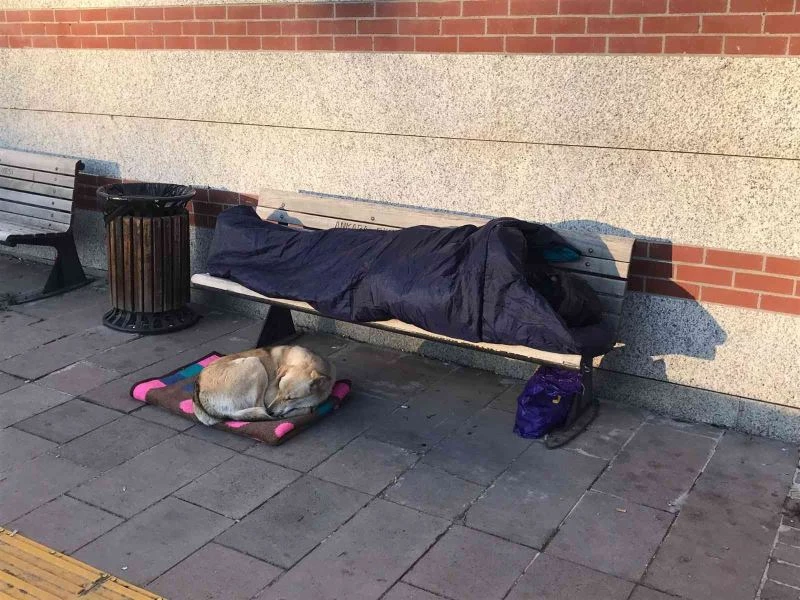 Çankaya ilçesi Mediha Eldem Sokakta Kocatepe Camii’nin duvarları dibinde bankta gece eksi 8 bulan ayazında 40 yaşlarındaki bir kişinin bankta sokakta yattığı görüldü. Bankta uyku tulumunun içinde yatan evsizin hemen yanında ise yatan köpek dikkat çekti. Bankta yatan evsiz vatandaşın battaniyesini köpeğin altına sermesi kameralara yansıdı. Kameralara takılan bu görüntü, yürekleri ısıttı.
