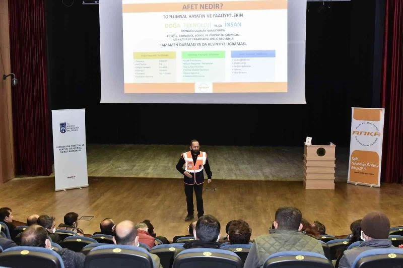 Deprem Risk Yönetimi ve Kentsel İyileştirme Daire Başkanlığı Afet Teknolojileri İzleme ve Eğitim Şube Müdürlüğü, kentin tüm paydaşlarını kapsayan mahalle bazlı ve apartman görevlilerine yönelik doğal afetler konusunda eğitim veriyor.