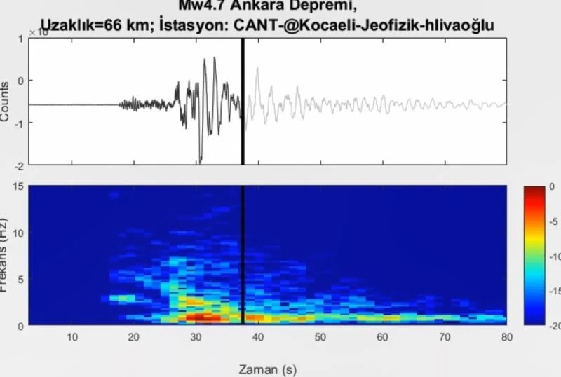 Ankara’nın Kalecik ilçesinde dün saat 22.53’te meydana gelen 4.5 büyüklüğündeki depremin yer altındaki sesi kaydedildi. Kocaeli Üniversitesi Jeofizik Mühendisliği Bölümü araştırma görevlisi Livaoğlu, depremin Çankırı istasyonundaki kaydı üzerinde çalışma yaptı. Yapılan çalışma ile depremin sinyali ses kaydına dönüştürüldü.