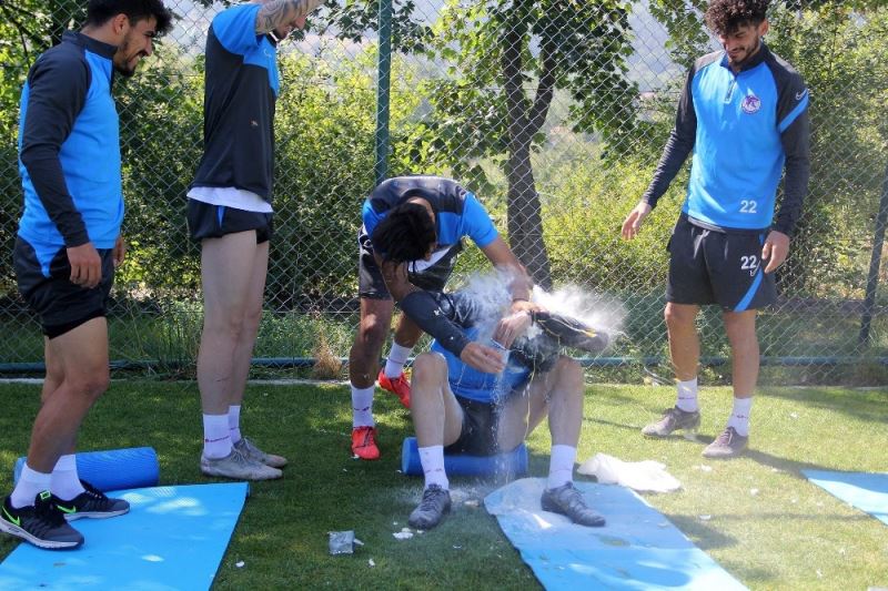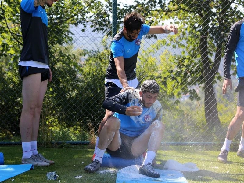 Antrenman sonrasında 29 yaşına giren kaptan Uğur Utlu’nun doğum günü takım arkadaşları tarafından Brezilya usulü kutlandı.
