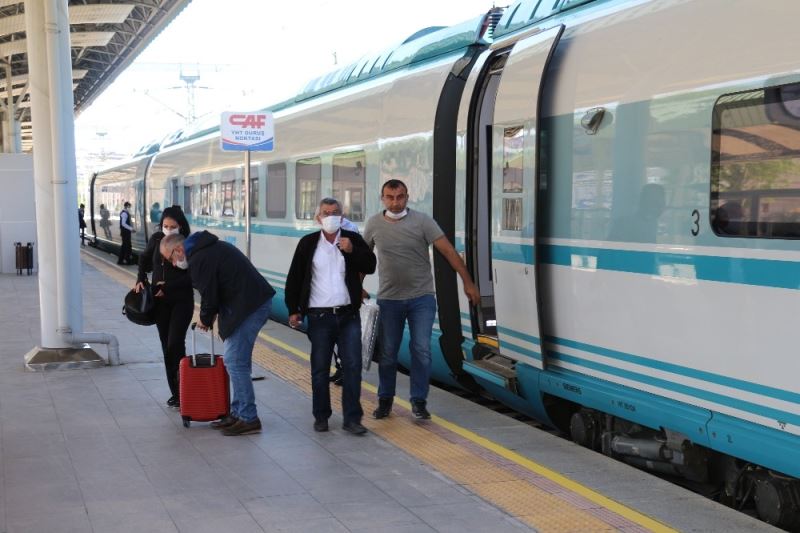 Korona virüs (Covid-19) salgını tedbirleri kapsamında 2 ay önce durdurulan ve bugün itibariyle başlayan Yüksek Hızlı Tren (YHT) seferleri kapsamında Ankara’dan yola çıkan YHT Konya’ya geldi.