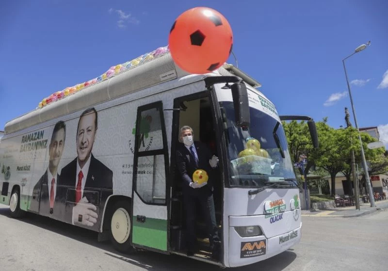 Korona virüs tedbirleri kapsamında Ramazan Bayramı’nı evlerinde geçirecek olan çocuklar için Başkan Köse 5 bin adet top, şeker ve oyuncakla dolu otobüste mahalleleri turladı. Balkonda oturan, pencereye çıkan vatandaşları selamlayan Başkan Köse, oyuncaklar dağıtıp çocukların bayram coşkusuna ortak oldu. Organizasyon öncesinde basın mensuplarına açıklamada bulunan Köse, “Bayram dolayısıyla bugün sokağa çıkma kısıtlaması var. Buna dikkat ederek çocuklarımıza toplar dağıtacağız. Bayramın neşeyle, mutlulukla geçmesi için çaba sarf edeceğiz” şeklinde konuştu.