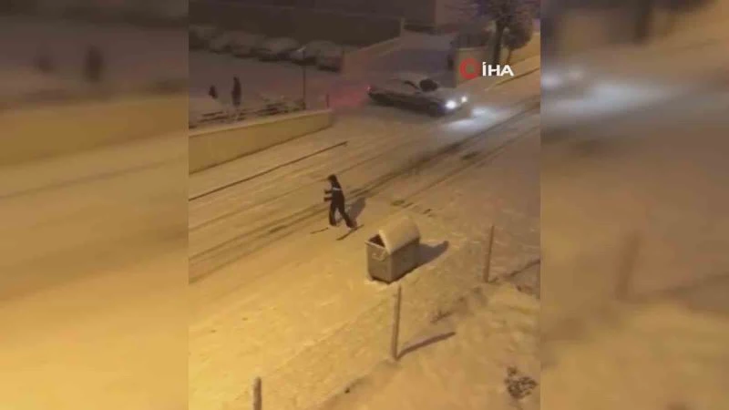 Akşam saatlerinde başlayan kar yağışı sonrası Ankara sokakları beyaza büründü. Kar yağışını göre vatandaşlar kendilerini sokağa attı. Sokakların karla kaplanmasını fırsat bilen bir vatandaş kayak yaptı. O anlar çevredeki vatandaşın cep telefonu kamerası tarafından kaydedildi.