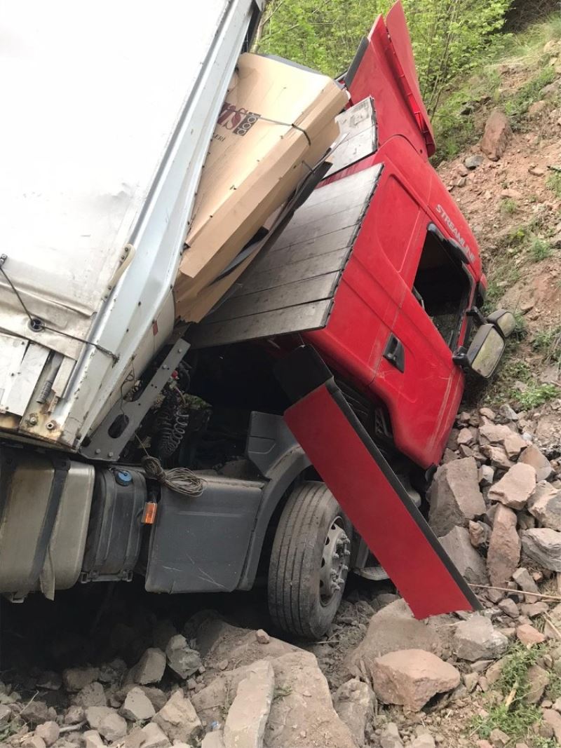 Olay, Ankara’nın Kızılcahamam ilçesindeki Azaphane mevkiinde meydana geldi. Edinilen bilgiye göre, Ankara’dan İstanbul istikametine seyretmekte olan 67 TG 896 plakalı tır, ismi henüz öğrenilemeyen sürücüsünün direksiyon hakimiyetini kaybetmesi sonucunda D-750 Karayolunun Kızılcahamam Azaphane mevkiinde şarampole devrildi. Çelik kapı yüklü olduğu öğrenilen tırın sürücüsü, kazayı hafif yaralarla atlatırken tırda ise maddi hasar meydana geldi.