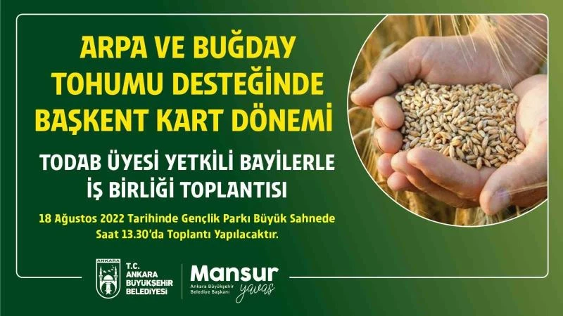 Ankara Büyükşehir Belediyesi, arpa ve buğday tohumu desteği için Tohum Dağıtıcıları Alt Birliği (TODAB) üyesi yetkili tohum dağıtıcıları ile iş birliği yapacak.