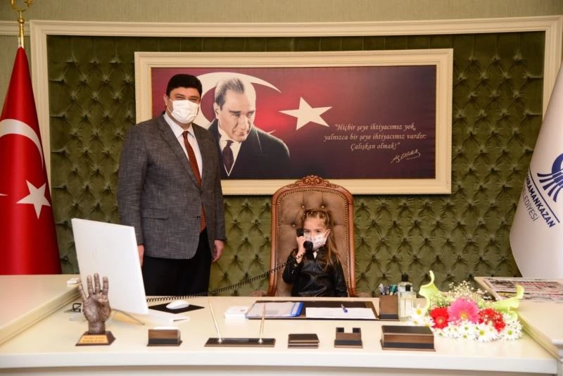 Ankara’nın Kahramankazan ilçesinde yaşayan 5 yaşındaki Hilal Sıla Güzelbayram, bir günlüğüne başkanlık koltuğuna oturdu.