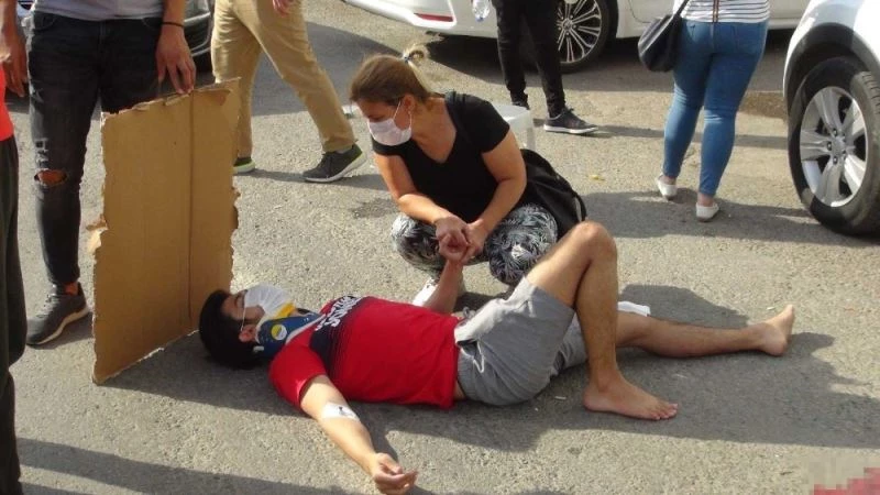 Antalya’nın Manavgat ilçesinde motosiklet ile kamyonetin çarpışması sonucu meydana gelen kazada 2 kişi yaralandı. Kazayı duyarak olay yerine gelen Ali Çelik’in annesi yerde yatan oğlunun yanına koşarken, oğlunun elinden tutarak teselli etmeye çalıştı. Anne, oğlu ambulansa alınana kadar oğlunun elini bırakmadı.