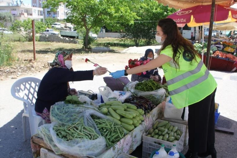 ANTALYA (AA) - Serik ilçesinde, Anneler Günü dolayisiyla pazarci kadinlara çiçek ve maske dagitildi.