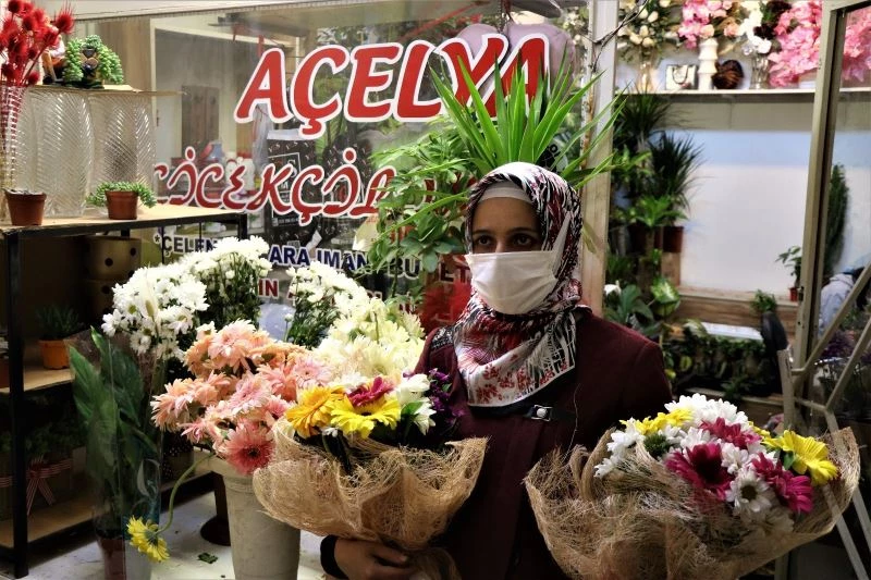 Kızları sipariş alırken anne Serap Eren, çiçekleri hazırlayıp teslimata hazırlıyor. Terme Caddesi üzerinde kızının da adını verdiği iş yerinde anneler için çiçek demeti hazırlayan Serap Eren, 5 yıl önce açtıkları iş yerinde her anneler gününde çalışıyor.
